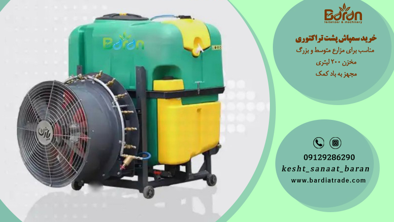 سمپاش پشت تراکتوری باغی ۲۰۰ لیتری برای باغداران و کشاورزان در مزارع کوچک یک انتخاب مناسب است. سهولت در کار کشاورزی اولین هدفی بود که باعث شد سمپاش پشت تراکتوری به عرصه تولید برسد. سمپاش پشت تراکتوری امروزه بعنوان محبوب‌ترین دستگاه در کشاورزی مدرن شناخته شود. در صورتی که باغ کوچکی دارید و می‌خواهید همه نقاط کور آن را سمپاشی کنید سمپاش توربین باغی بهترین انتخاب برای شما است. این مدل دستگاه‌ها با کمک جریان باد کار می‌کند. برای آشنایی با بخش‌های مختلف سمپاش پشت تراکتوری و خرید آن با قیمت مناسب تا پایان مطلب همراه ما باشید.